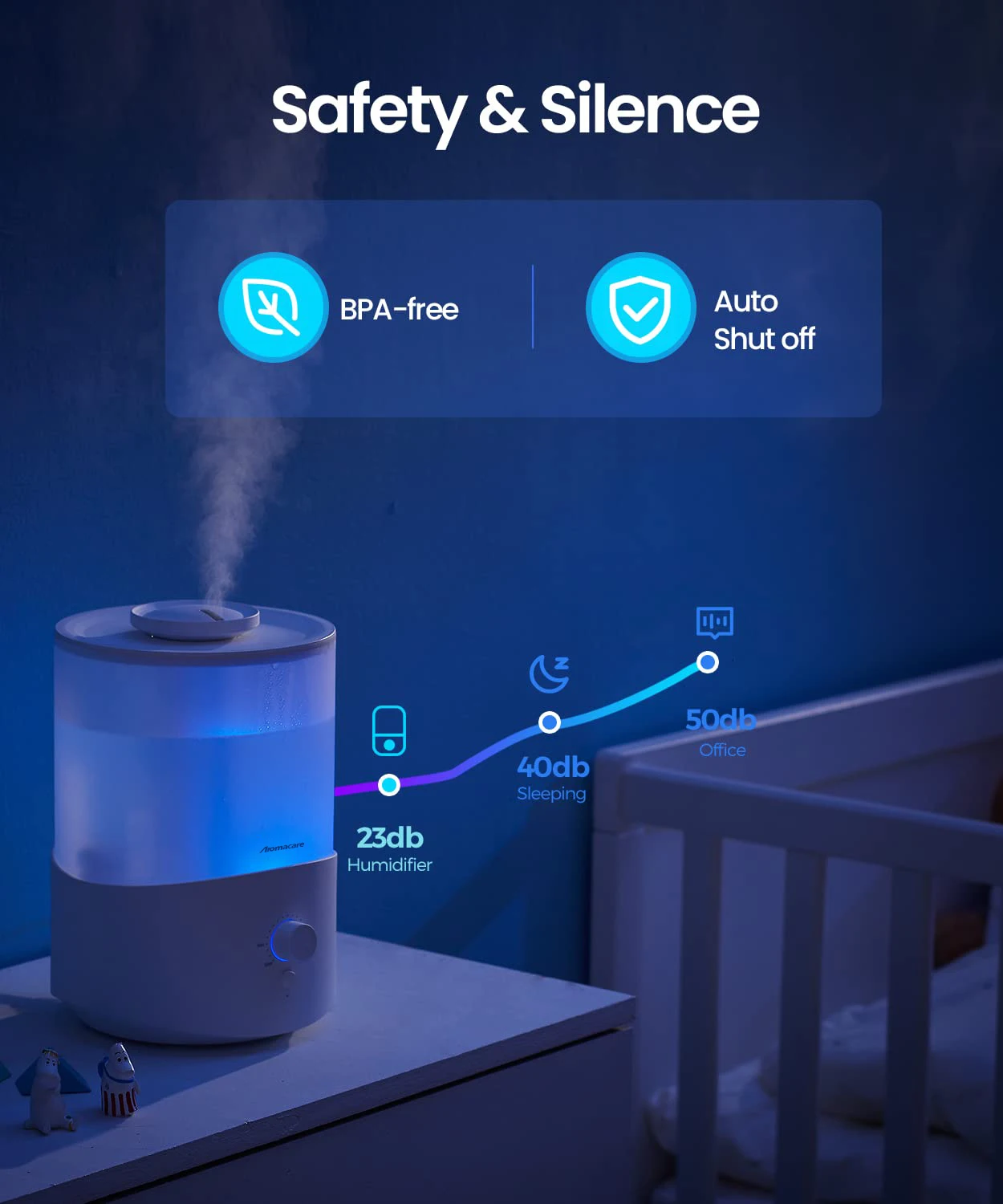 Aromacare 2.5L Personal 7 LED Night Light Home Room Top Fill Cool Mist Spray Ultrasonic Air Humidifier with Essential Oil