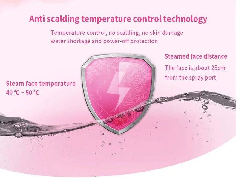 1. Thermal jet steamer 2. Plug in use 3. One touch start 4. 200ml water tank 5. Dry burning and power-off protection |