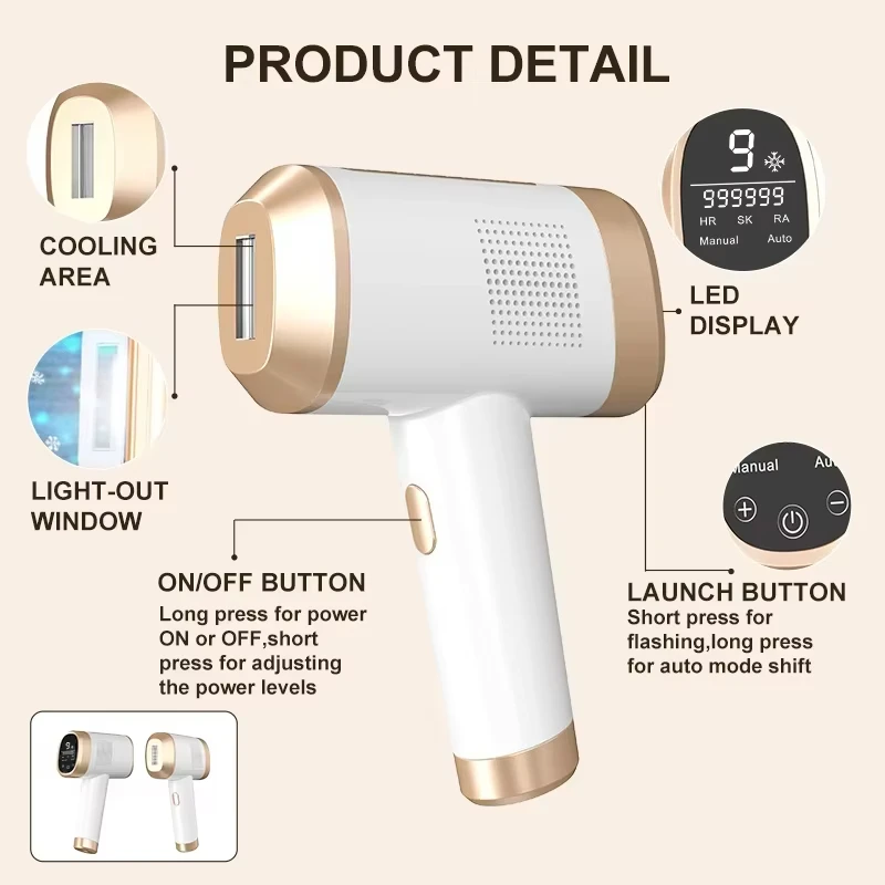 Sapphire Home Use IPL Machine Handheld Electric Epilator with Sapphire Handheld Ice Cooling Laser Hair Removal Skin Rejuvenation