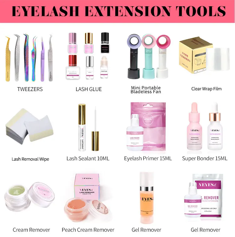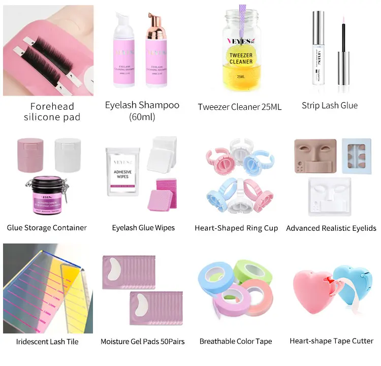 Type: tweezer cleaner,eyelash shampoo,eyelashes boxes,glue shaker,glue storage tank,acrylic lash box,Makeup Mirror,UV LAMP